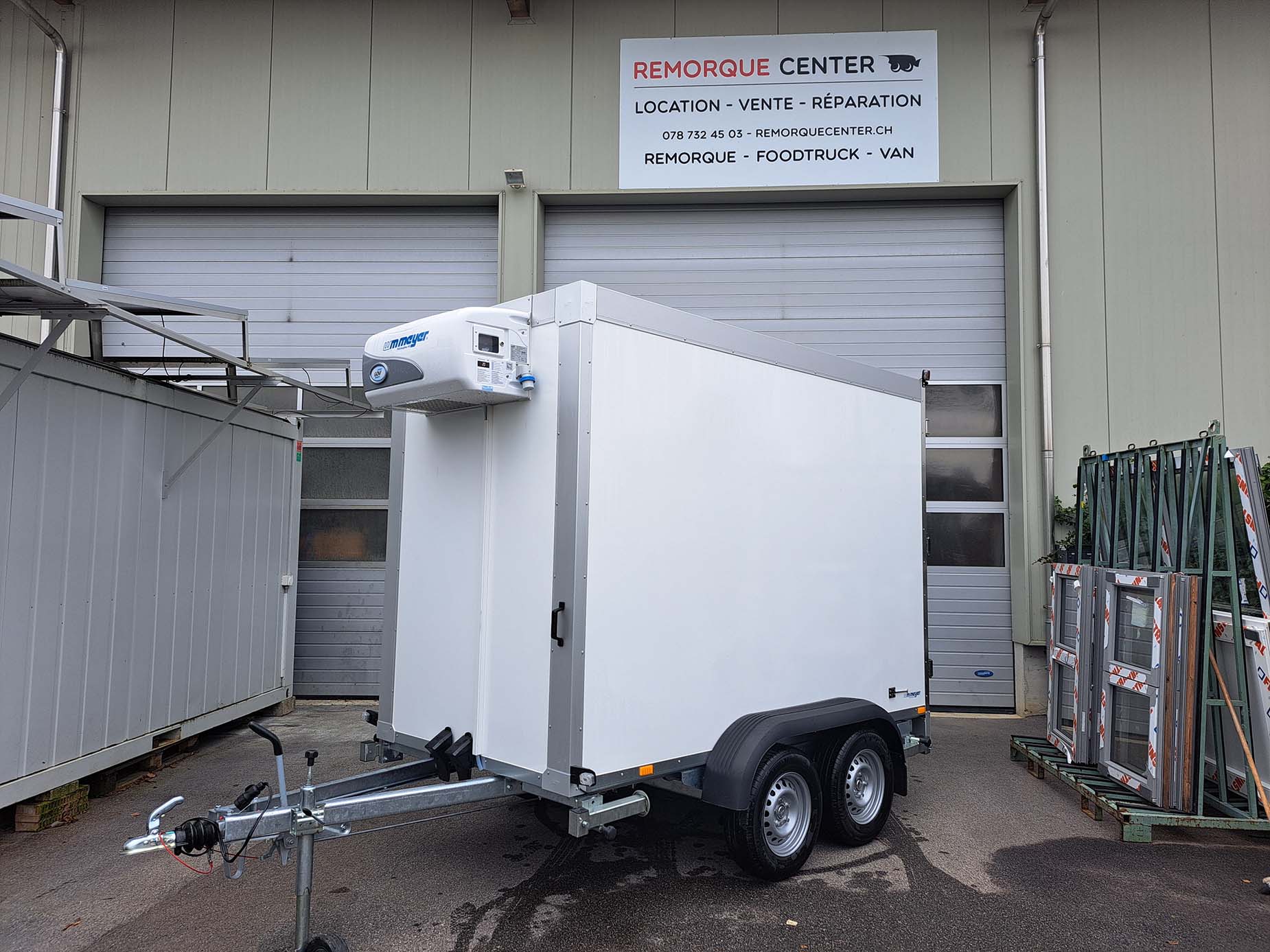 remorques moto, remorques frigorifiques ainsi que des food trailers, afin de répondre à chaque besoin de transport ponctuel ou régulier entre Lausanne et Genève.